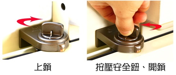 防墜防盜, 有暗鎖, 按壓同時旋轉開鎖, 更安心!